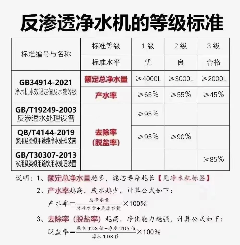 只為您喝的每一滴水都是健康水!凈水機(jī)水效等級計(jì)算公式《GB34914-2001》
